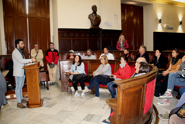 El alcalde de Sagunto, Darío Moreno, y la delegada de Turismo, Natalia Antonino, han recibido esta mañana en el Salón de Plenos del Ayuntamiento de Sagunto a los alrededor de 30 alumnos del curso de Turismo Cultural, organizado por la Fundación Cañada Blanch en colaboración con Turisme Comunitat Valenciana. El alumnado del curso ha venido hoy a Sagunto para participar en la Jornada de Turismo Cultural, que se desarrolla en colaboración con la delegación de Turismo del Ayuntamiento de Sagunto. Una estancia que incluye una serie de talleres-visita al casco histórico de Sagunto, el museo de la Vía del Pòrtic y el patrimonio arqueológico-industrial de Puerto de Sagunto.