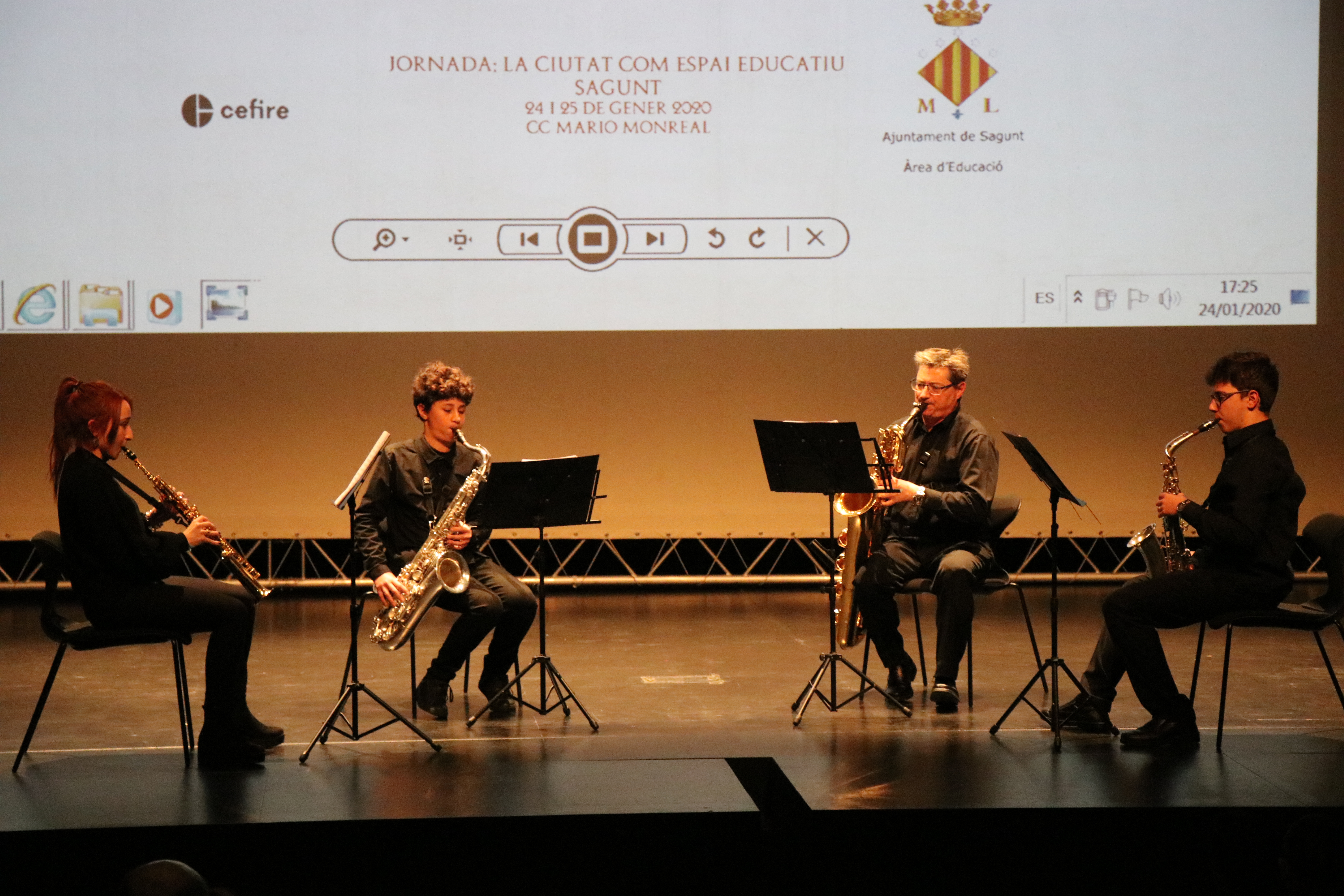 Las jornadas han comenzado con la entrega de documentación así como con la apertura musical a cargo del cuarteto de saxos del Conservatorio Profesional de Música Joaquín Rodrigo de Sagunto. A continuación han intervenido el concejal de Educación y el alcalde de Sagunto, entre otros, para inaugurar las jornadas.