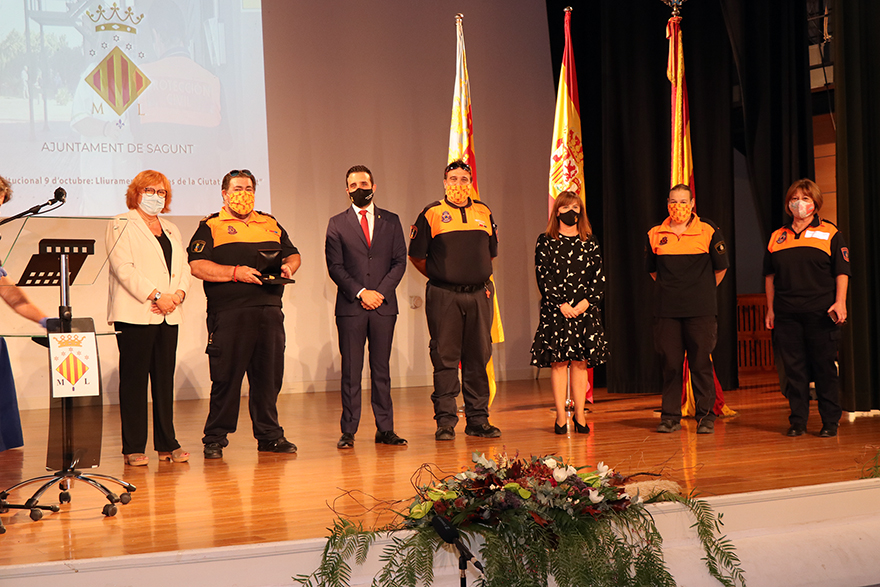 Sagunto ha celebrado un año más la festividad del 9 de Octubre, Día de la Comunidad Valenciana, pero este año con la peculiaridad derivada de la pandemia por COVID-19 que ha hecho que no se lleve a cabo la tradicional bajada de bandera desde el consistorio ni la procesión cívica. Este 2020, de los actos institucionales el Ayuntamiento de Sagunto ha llevado a cabo la entrega de Medallas de la Ciudad en el Teatro de Begoña, con todas las medidas de seguridad necesarias, que este año se han concedido a Vicente Madrid, al Club Deportivo Acero y a las instituciones públicas y privadas por los servicios prestados durante la crisis de la COVID-19.