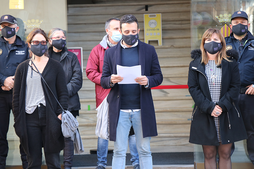 El Ayuntamiento de Sagunto, a través del Área de Igualdad, ha convocado un minuto de silencio hoy, 25 de noviembre, a las 12 horas, con motivo del 25N, Día Internacional de la Violencia contra las Mujeres y para recordar a las 41 mujeres asesinadas durante 2020 y a las que todavía sufren todo tipo de maltratos.