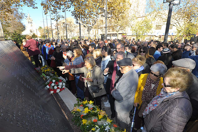 En el acto se hizo sonar dos veces la sirena de “la fábrica”, hubo una actuación del Cuarteto de Cuerda del Conservatorio de Sagunto y una suelta de palomas. También hubo un momento para que los familiares depositaran flores en memoria de sus seres queridos.