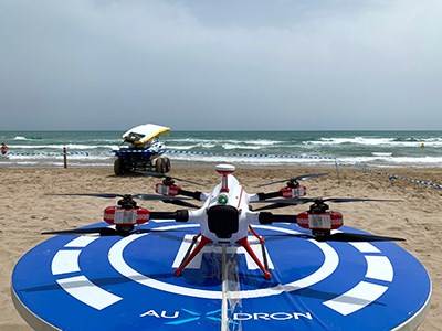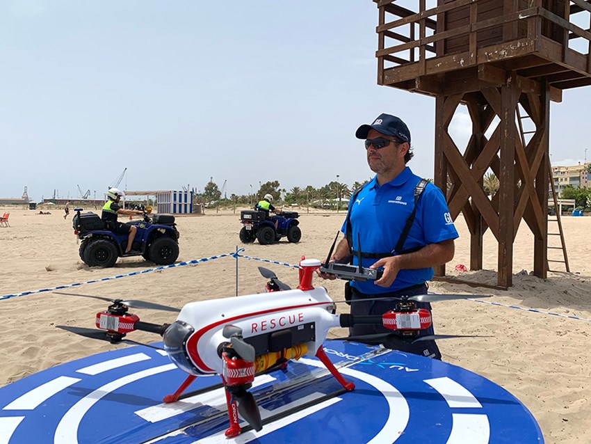 Este año el servicio comenzó el pasado miércoles, 15 de junio, y se extenderá hasta el 15 de septiembre, tramo que se corresponde con el periodo de baño en que ocurre la mayor parte de los ahogamientos en la costa mediterránea. El Auxdron LFG es un dron con inteligencia artificial capaz de controlar los aforos de la playa, dar avisos a los bañistas o hacer rutas de vigilancia y prevención, pero su función principal es acortar los tiempos de respuesta ante una emergencia, llegando rápidamente a la víctima y entregándole un chaleco salvavidas en un tiempo récord, asegurando así su flotabilidad.
