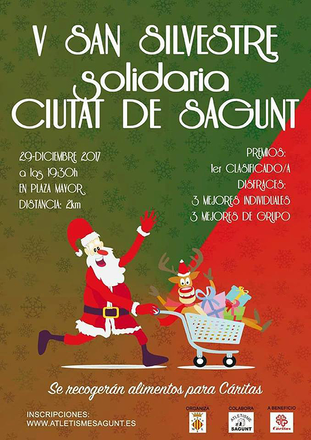 En este caso se trata de la XXI San Silvestre Runner Puerto de Sagunto, un evento que lleva realizándose ya 21 años por el Ayuntamiento de Sagunto y el Club Deportivo Camp de Morvedre. Esta carrera tendrá lugar un día después de la carrera de Sagunto, el 30 de diciembre, y comenzará a las 19.00 h. Obviamente, durante este evento también se permitirá a los participantes correr con disfraces.