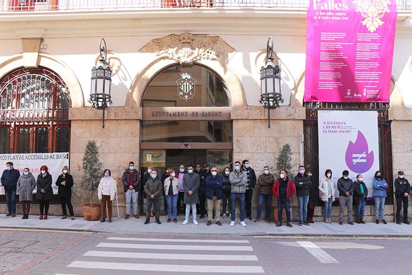 El Ayuntamiento de Sagunto se suma a la iniciativa de la Federación Española de Municipios y Provincias (FEMP) y, por esa razón, ha realizado esta mañana una concentración silenciosa de cinco minutos frente a las puertas de los edificios municipales en solidaridad con el pueblo ucraniano.