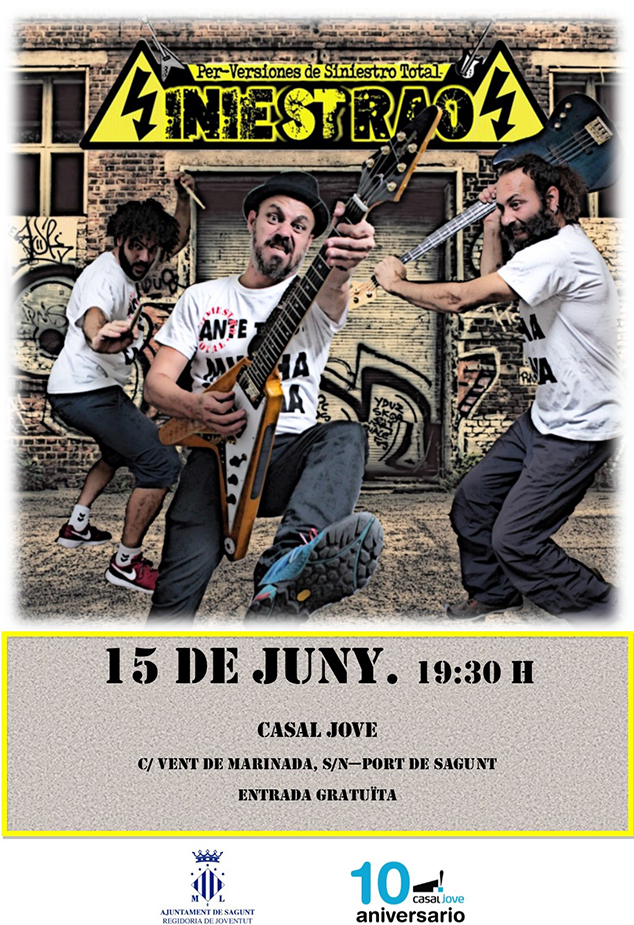 El grupo sevillano Siniestraos rendirá tributo a la banda de punk-rock gallego Siniestro Total el sábado, 15 de junio, a las 19 h en el Casal Jove de Puerto de Sagunto. El concierto está organizado por la delegación de Juventud del Ayuntamiento de Sagunto y la entrada será gratuita hasta completar el aforo.