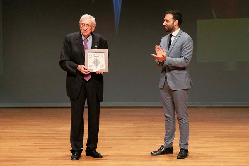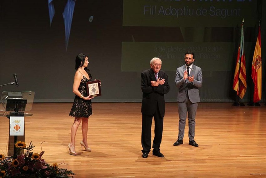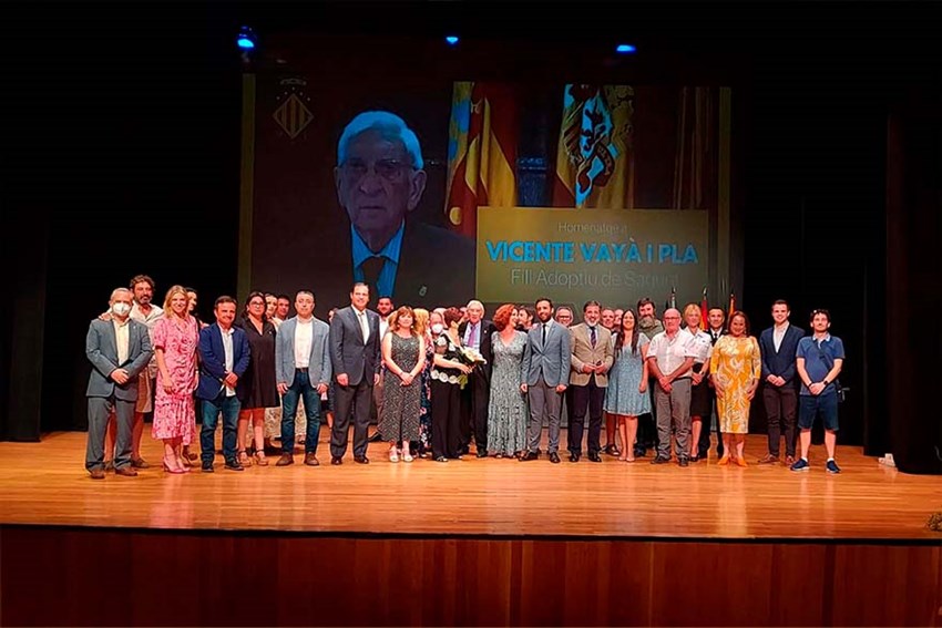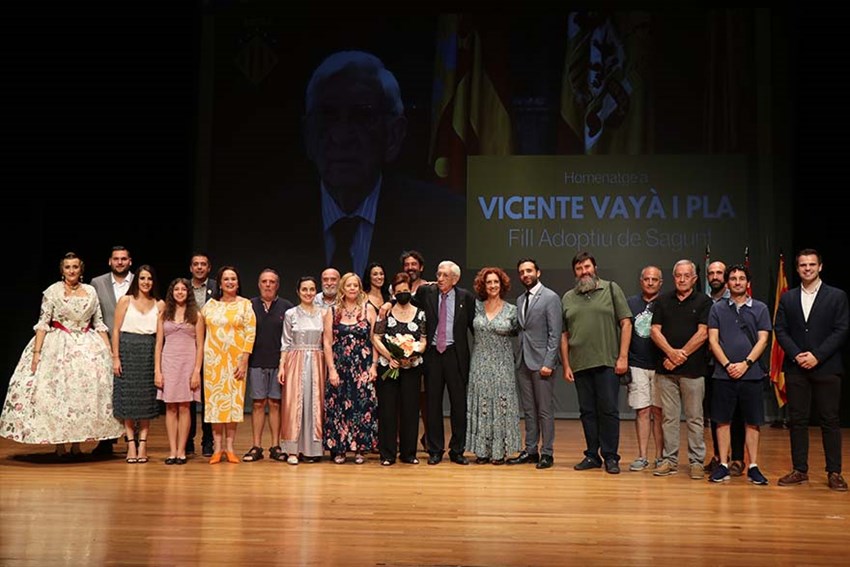 Vicente Vayá Pla recibió ayer el cariño de Sagunto en el Auditorio Joaquín Rodrigo, en un homenaje con motivo de la concesión del título de Hijo Adoptivo de la Ciudad de Sagunto, que fue aprobado por unanimidad por el Pleno Extraordinario del Ayuntamiento de Sagunto, celebrado el pasado 20 de mayo.