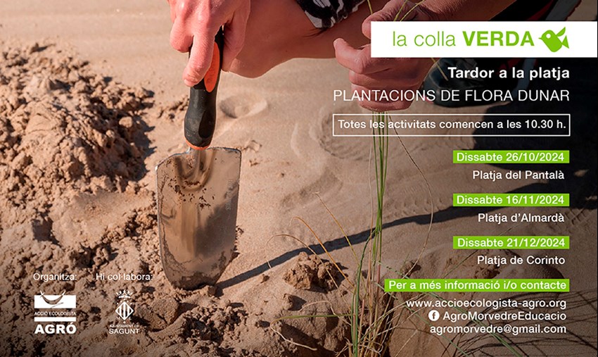 Al llegar el otoño es tradición que La Colla Verda convoque a la sociedad civil para reforzar las plantaciones de flora dunar que desde hace décadas realiza en las playas de Sagunto, precisamente con el objetivo de protegerlas de la erosión litoral. Este año, como no podía ser de otra manera, el proyecto de voluntariado ambiental del Ayuntamiento de Sagunto (Camp de Morvedre, València) y Acción Ecologista-Agró, ha organizado una nueva campaña para continuar poniendo su granito de arena en la conservación de los ecosistemas dunares de la capital de la comarca. La primera será el próximo sábado 26 de octubre en la playa del Pantalán de Puerto de Sagunto.