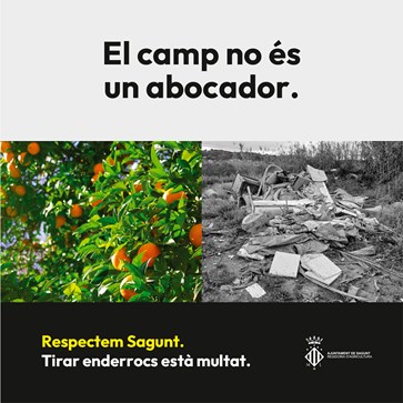 La Regidoria d'Agricultura de l'Ajuntament de Sagunt posa en marxa una campanya de conscienciació ciutadana per a frenar l'abocament d'enderrocs, principalment en camps, camins i altres espais no autoritzats. Estos abocaments estan provocant problemes tant en la pròpia superfície agrícola com en l'accés a les parcel·les i en determinades infraestructures.