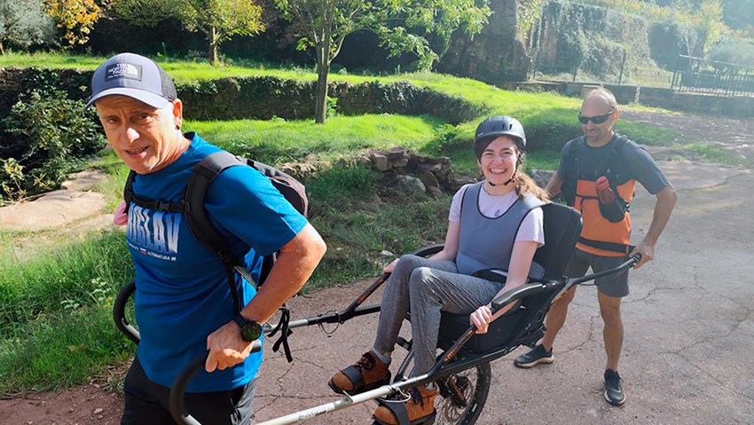 L'associació Cazaretos ha cedit una cadira Joëlette a una persona amb mobilitat reduïda perquè poguera gaudir de la ruta junt a la resta del grup que ha conformat esta excursió d'Alternatura a l'Escola. La cadira Joëlette és una cadira tot terreny amb una sola roda que possibilita gaudir del senderisme i altres activitats en entorns naturals a persones amb mobilitat reduïda.
