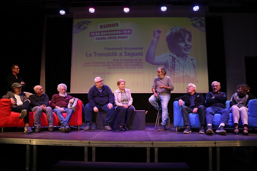 El documental La Transició a Sagunt s'ha projectat per primera vegada en el Casal Jove del Port de Sagunt este dijous en el marc de la programació organitzada per la Regidoria de Memòria Històrica i Democràtica amb motiu dels 50 anys del retorn de la democràcia a Espanya.