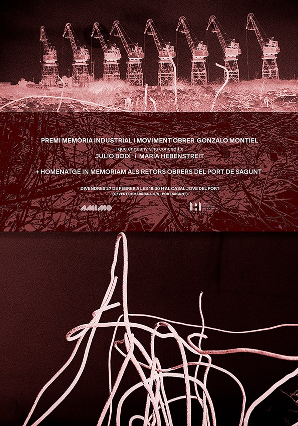 El Casal Jove Port de Sagunt acollirà divendres que ve 27 de febrer a les 18:30 hores l’entrega dels Premios Memoria Industrial y Obrera Gonzalo Montiel organitzats per l'Asociación Memoria Industrial y Movimiento Obrero (AMIMO), amb la col·laboració de la regidoria de Memòria Històrica i Democràtica de l'Ajuntament de Sagunt.
