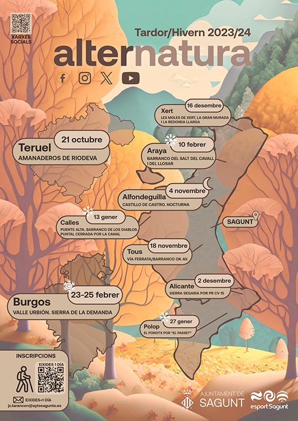 Per a més informació sobre Alternatura es pot enviar un correu electrònic a alternatura@ayto-sagunto.es. Així mateix, sobre la programació de les excursions de la temporada tardor-hivern i per a reservar places s’ha de consultar el següent enllaç: https://aytosagunto.es/es/ayuntamiento/areas-y-servicios/actividad-fisica-salud-y-deportes/alternatura/.