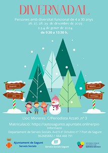 Finalment, el departament de Serveis Socials ha programat el DiverNadal per a les festes nadalenques. Són activitats dirigides a les persones del municipi amb diversitat funcional. El programa d'enguany oferix activitats d'oci i temps lliure. A més, inclourà activitats artístiques, de psicomotricitat fina i gruixuda, d'expressió corporal, tallers d'ombra, musicoteràpia, curtmetratge, taller de cuina i visites pel municipi, com al pesebre, el mercat ambulant nadalenc, etcètera. «Oferirem solament 15 places donada la sensibilitat i necessitats de les persones usuàries», ha informat Nuria Carbó.
