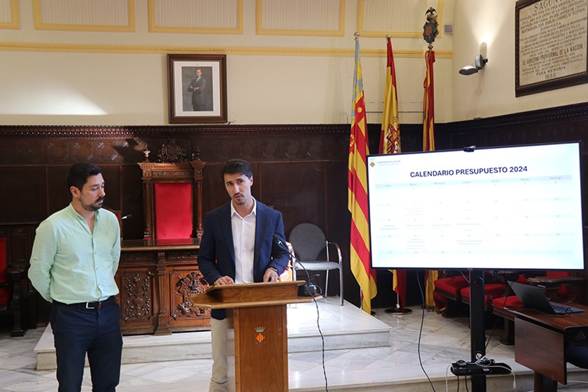El regidor d'Hisenda, Toni Iborra, ha anunciat este matí que l'Ajuntament celebrarà un ple extraordinari el pròxim 23 de novembre per a aprovar la proposta de pressupost municipal de 2024. Acompanyat pel regidor de l'Equip de Govern, Roberto Rovira, també ha detallat les dates en què presentaran la proposta al Consell Econòmic i Social (CES), a la resta de grups polítics en les comissions informatives i a la ciutadania en les audiències públiques.