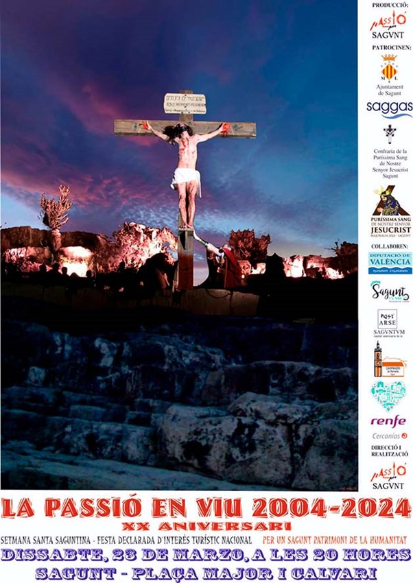 L'associació Passió per Sagunt representarà demà, dissabte 22 de març, Passió en Viu, una obra de tragèdia sacra sobre la passió de Jesucrist. L'obra s'interpretarà en el centre històric de Sagunt, a partir de les 20 hores, en la plaça Major i el Calvari.
