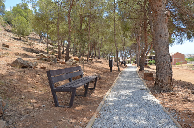 Així mateix, per al mobiliari urbà s'ha usat un material realitzat a partir de plàstics reciclats, amb més de 215.000 envasos. Un aspecte positiu és que no serà necessari el manteniment, ja que a conseqüència del producte amb el qual està fabricat no li afecten els insectes, la humitat o el sol i les pintures i grafits es netegen fàcilment. També s'ha instal·lat una zona de pícnic amb bancs, taules i papereres, que ha sigut tradicional en el municipi i que es trobava en un estat de deterioració avançada. D'igual forma, s'han instal·lat panells informatius.