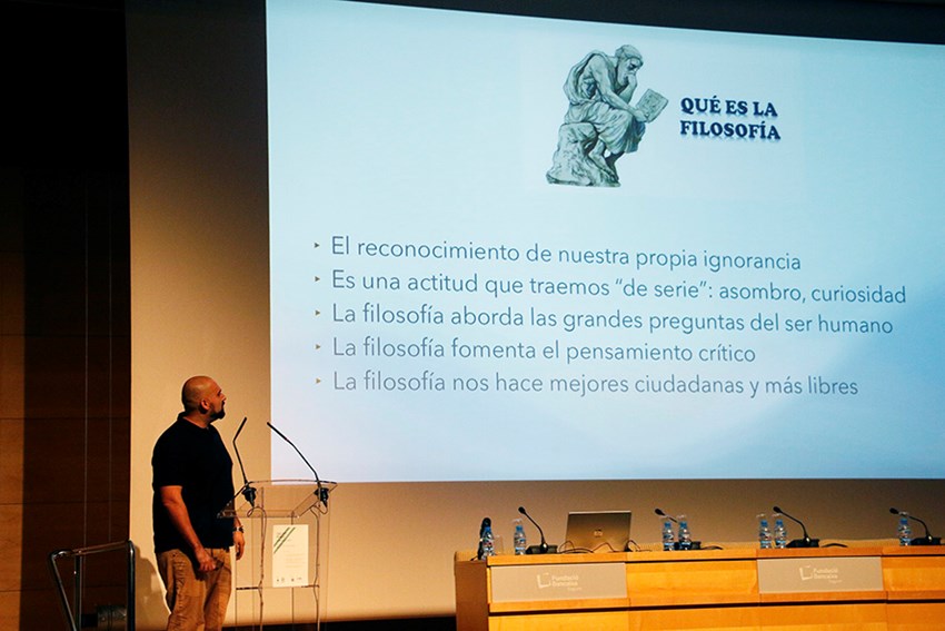 En la primera ponència, el professor Manuel Almagro va defensar la necessitat que la filosofia siga una branca del coneixement humil (sense les pretensions del passat) i interdisciplinari i per a això es va servir de l'exemple d'un succés sociològic com la polarització (ideològica o afectiva) per a veure com la filosofia ajuda a entendre millor la nostra realitat.